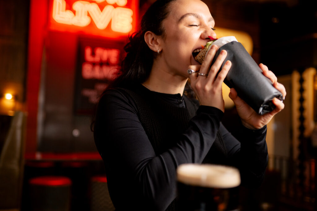 This is not just a fun concept though. The flavours deliver too. The kebab includes Guinness marinated beef kofta wrapped in a handmade flatbread, drizzled with a sticky homemade Guinness chipotle glaze, and finished with fresh mint yoghurt. The result is rich, smoky, spicy, and seriously moreish, perfect for eating while watching the rugby.