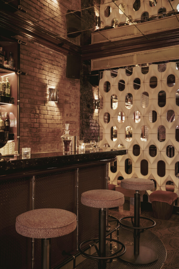A charcuterie selection from Authentique Épicerie and artisan cheeses from Neal’s Yard Dairy round out the offering — refined, shareable plates designed to complement the cocktails without overshadowing them.
