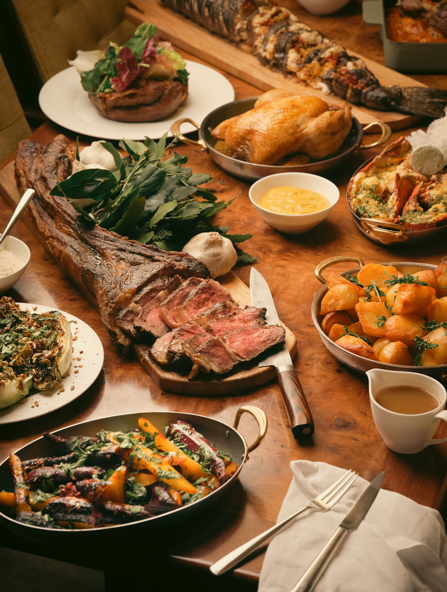 The menu centres around sharing-style roasts, done properly. Think Basque roast chicken, Lake District tomahawk steak, or slow-roast Herdwick lamb shoulder, all served with the kind of trimmings that feel generous without being excessive.